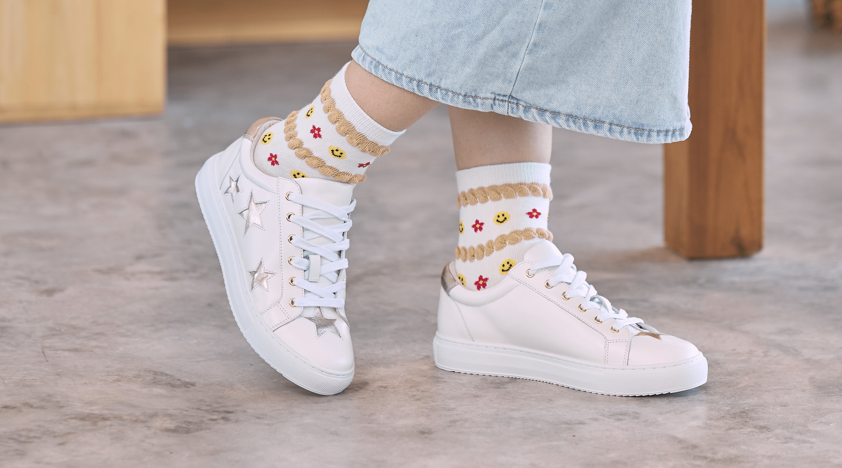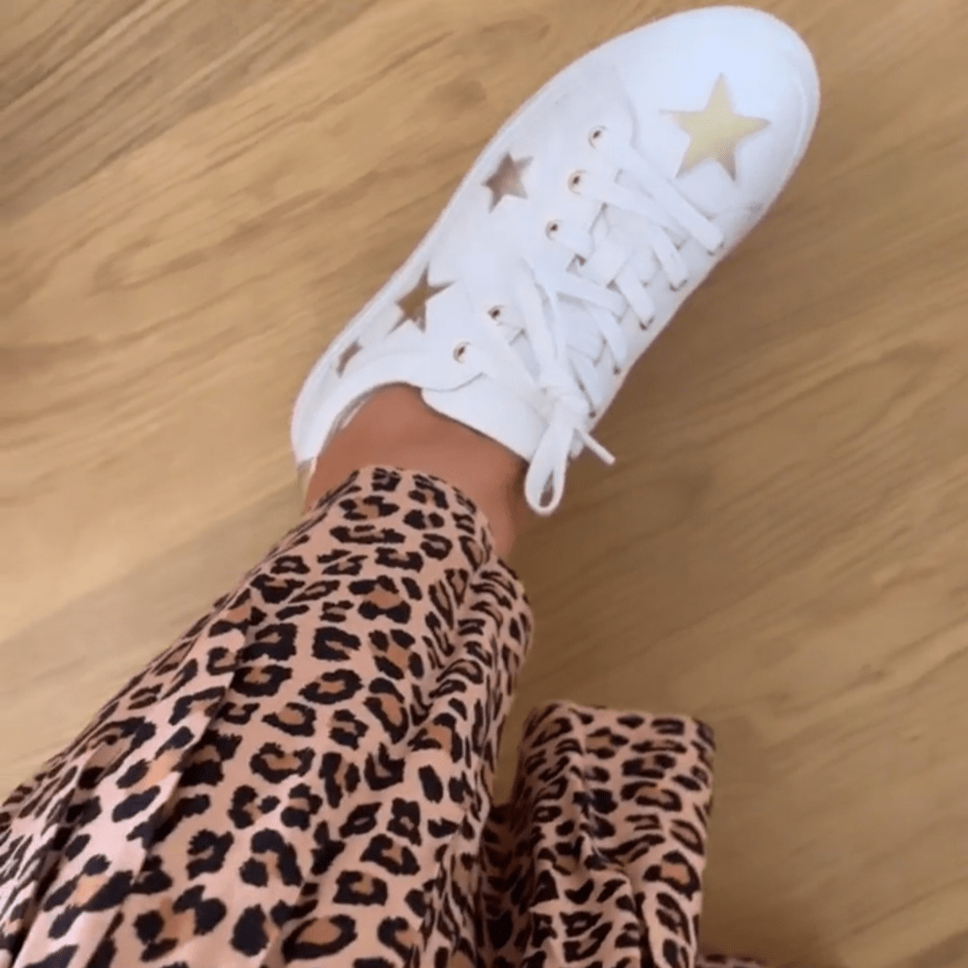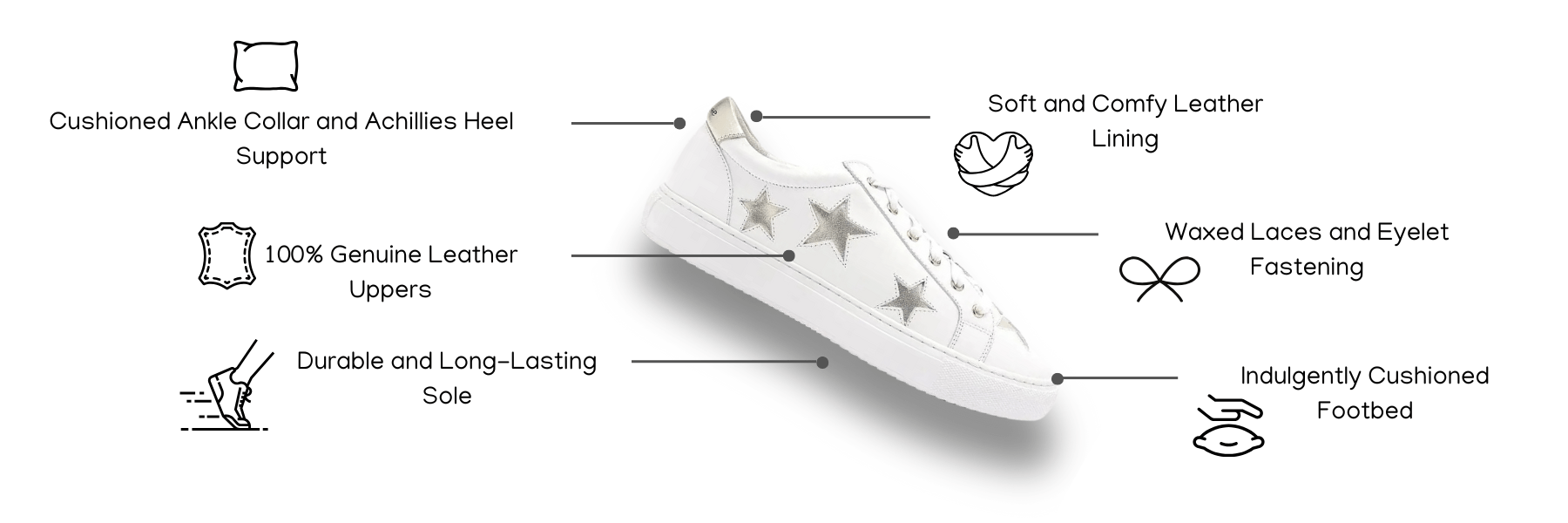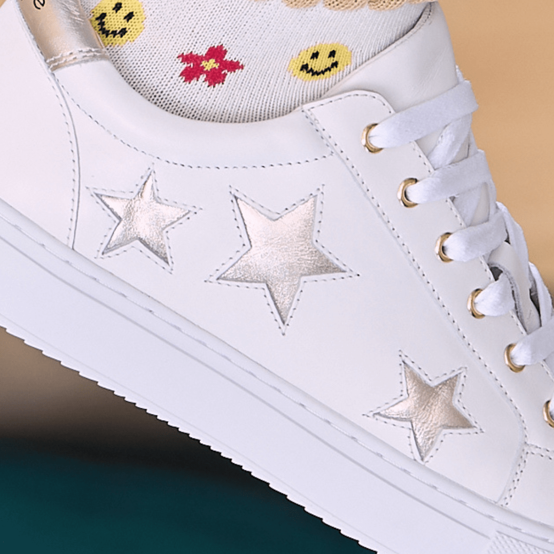 A Look Inside the Comfort of Hoxton White Leather Trainers with Gold Stars