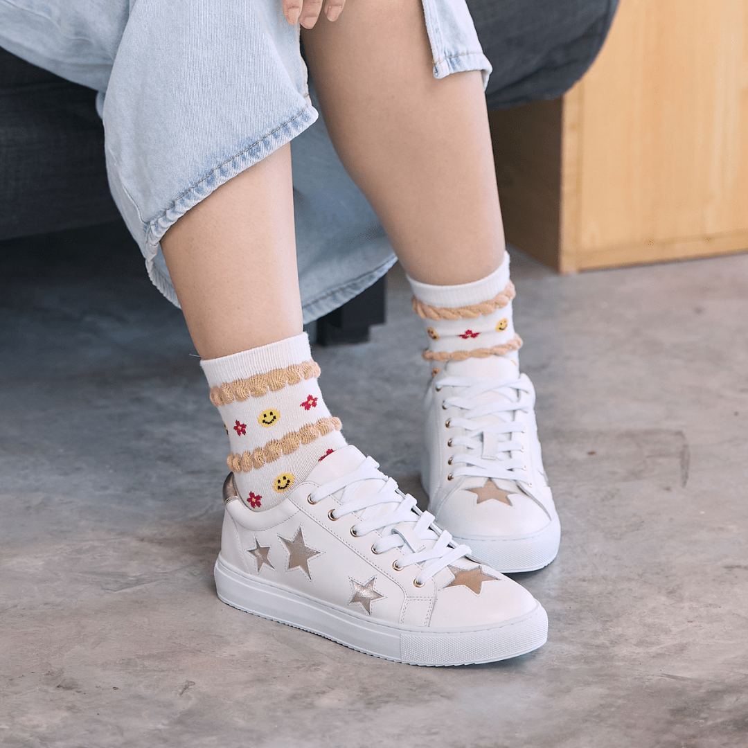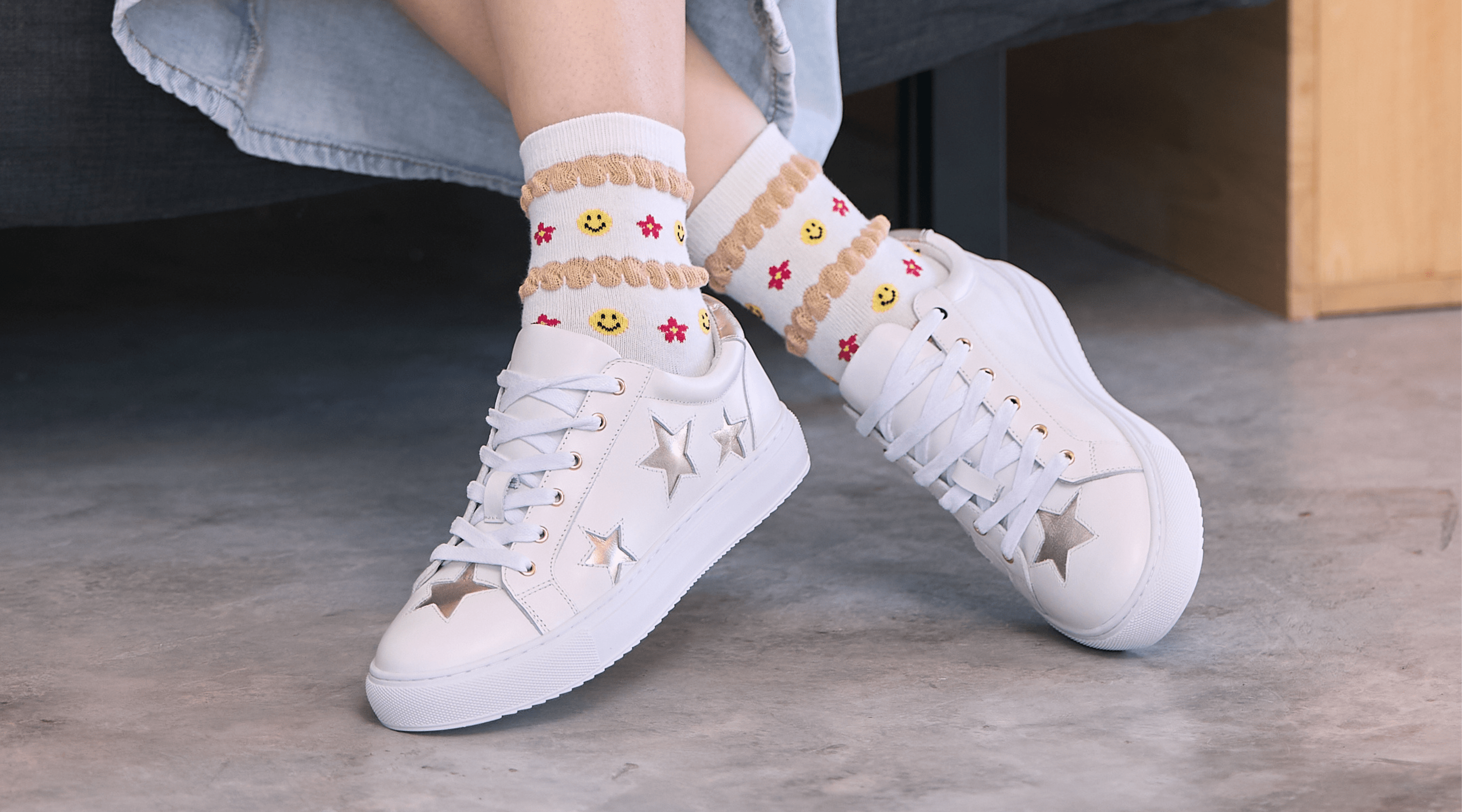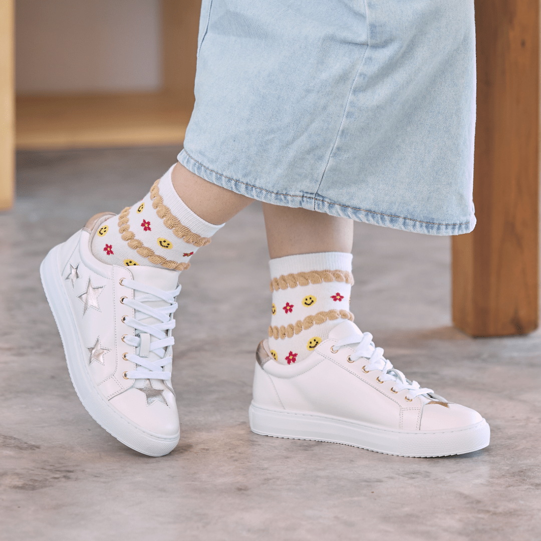 A Look Inside the Comfort of Hoxton White Leather Trainers with Gold Stars