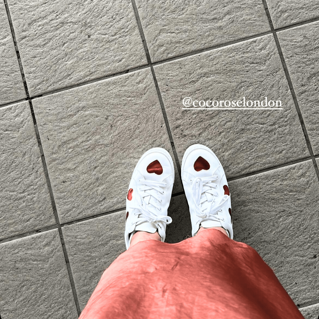 Cocorosers Wearing Their Hoxton White Leather Trainers with Red Hearts
