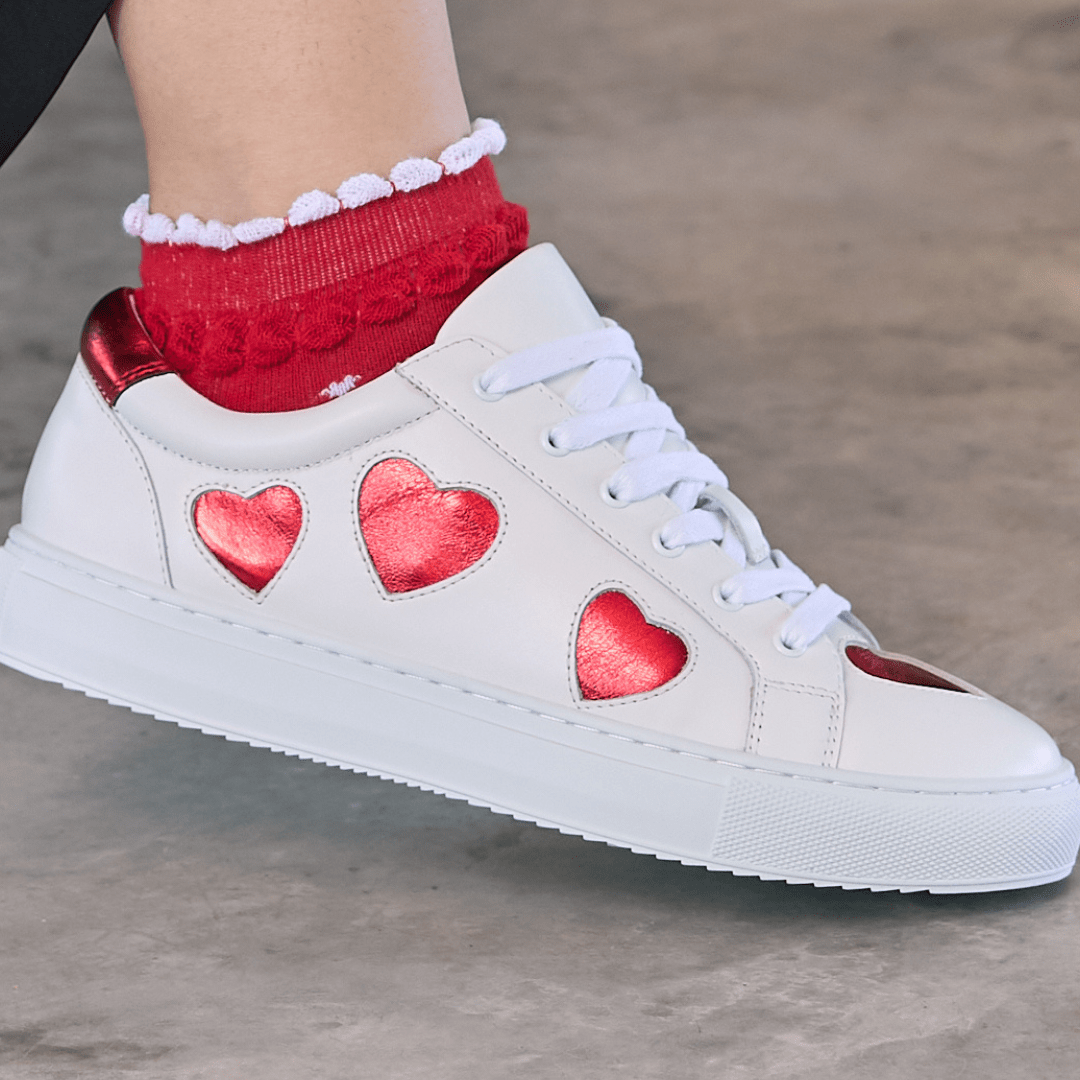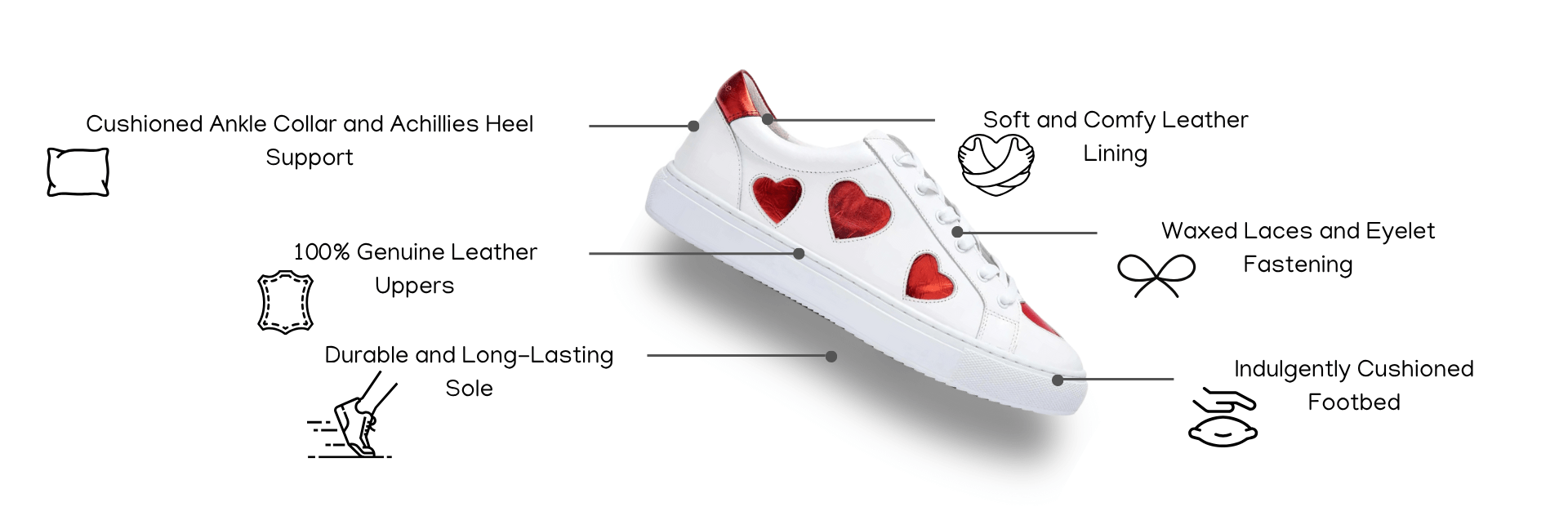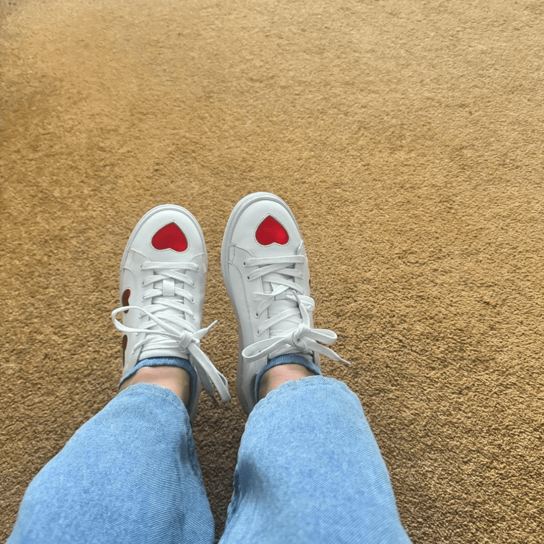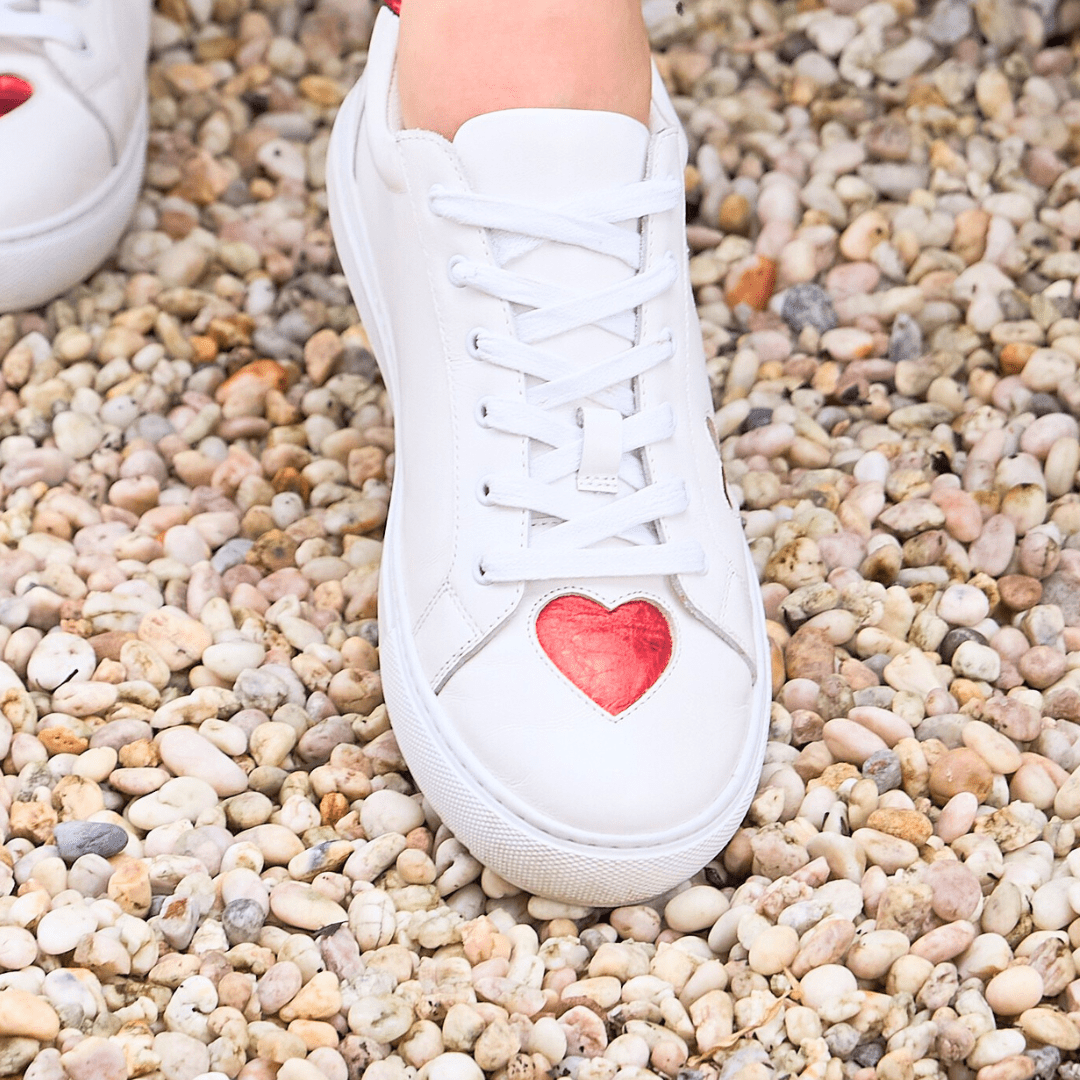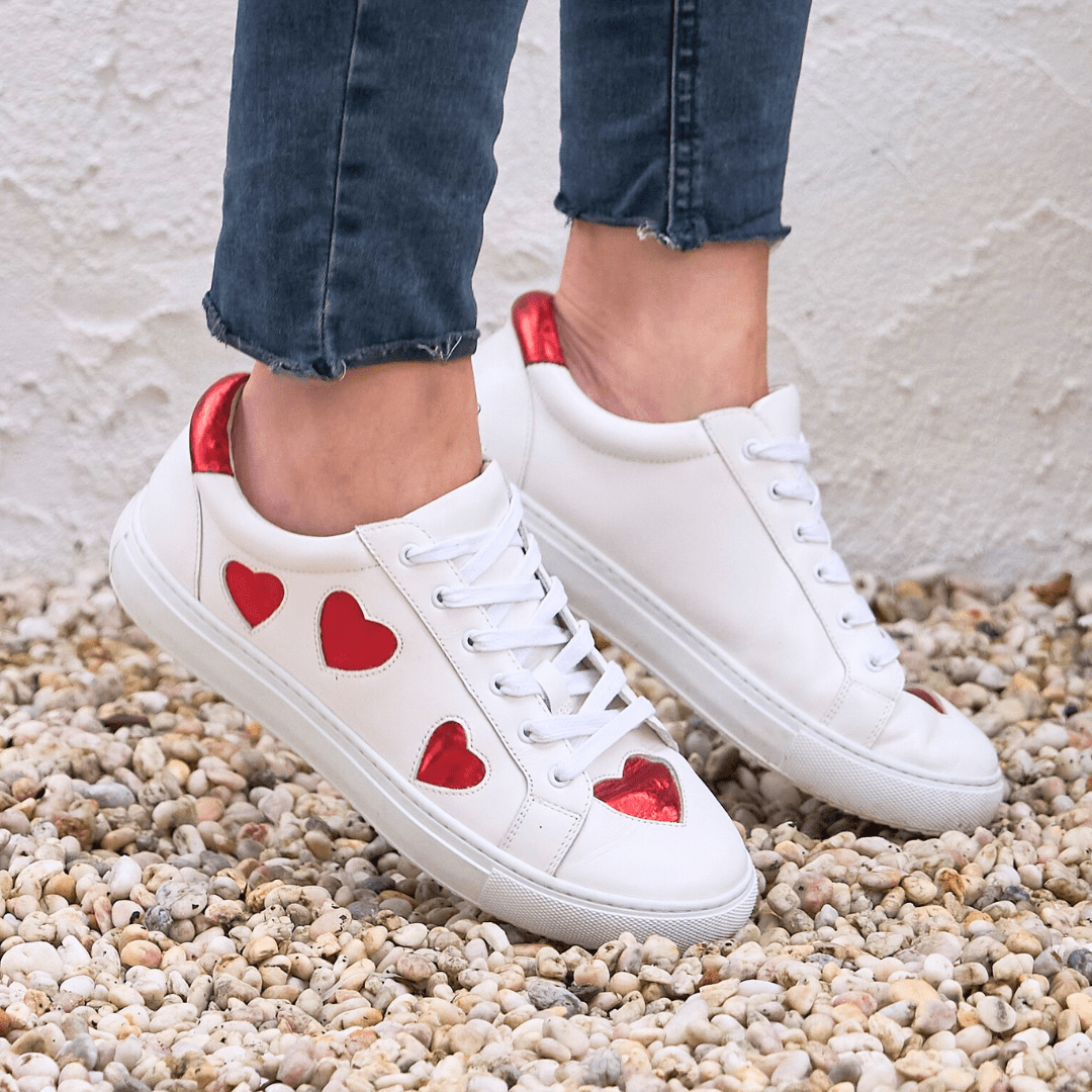 A Look Inside the Comfort of Hoxton White Leather Trainers with Red Hearts