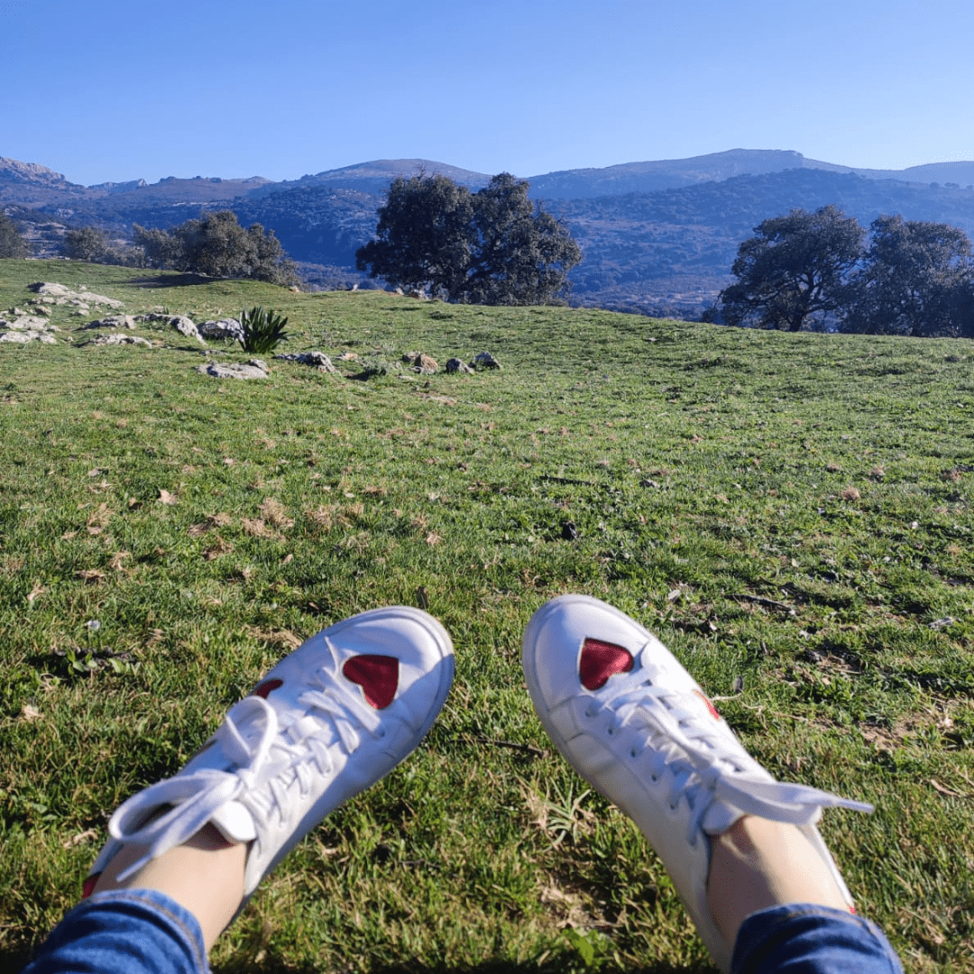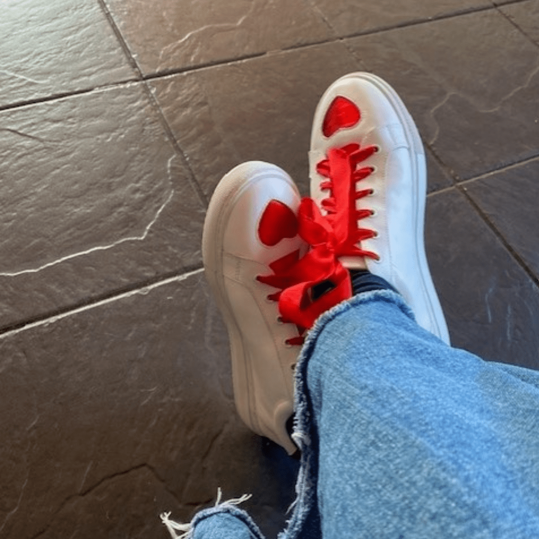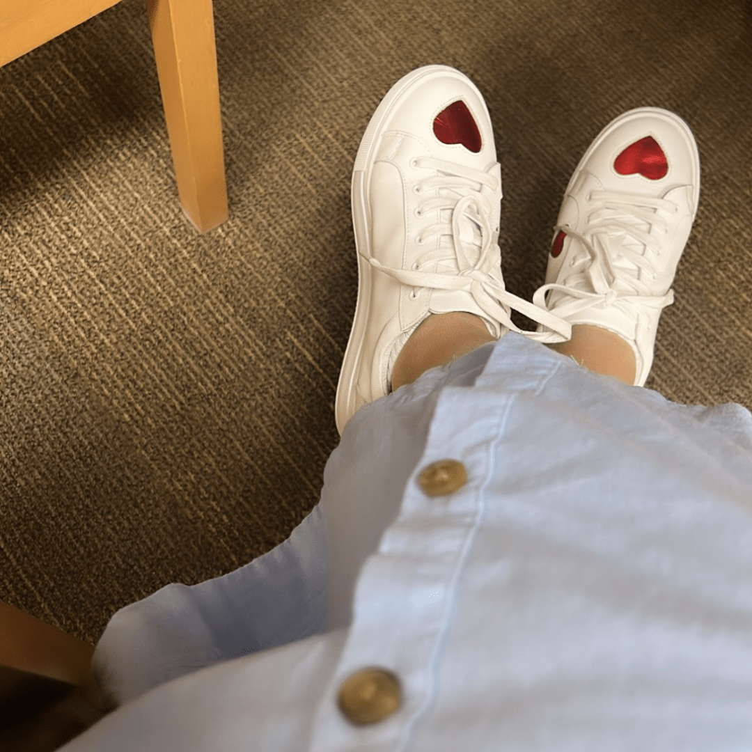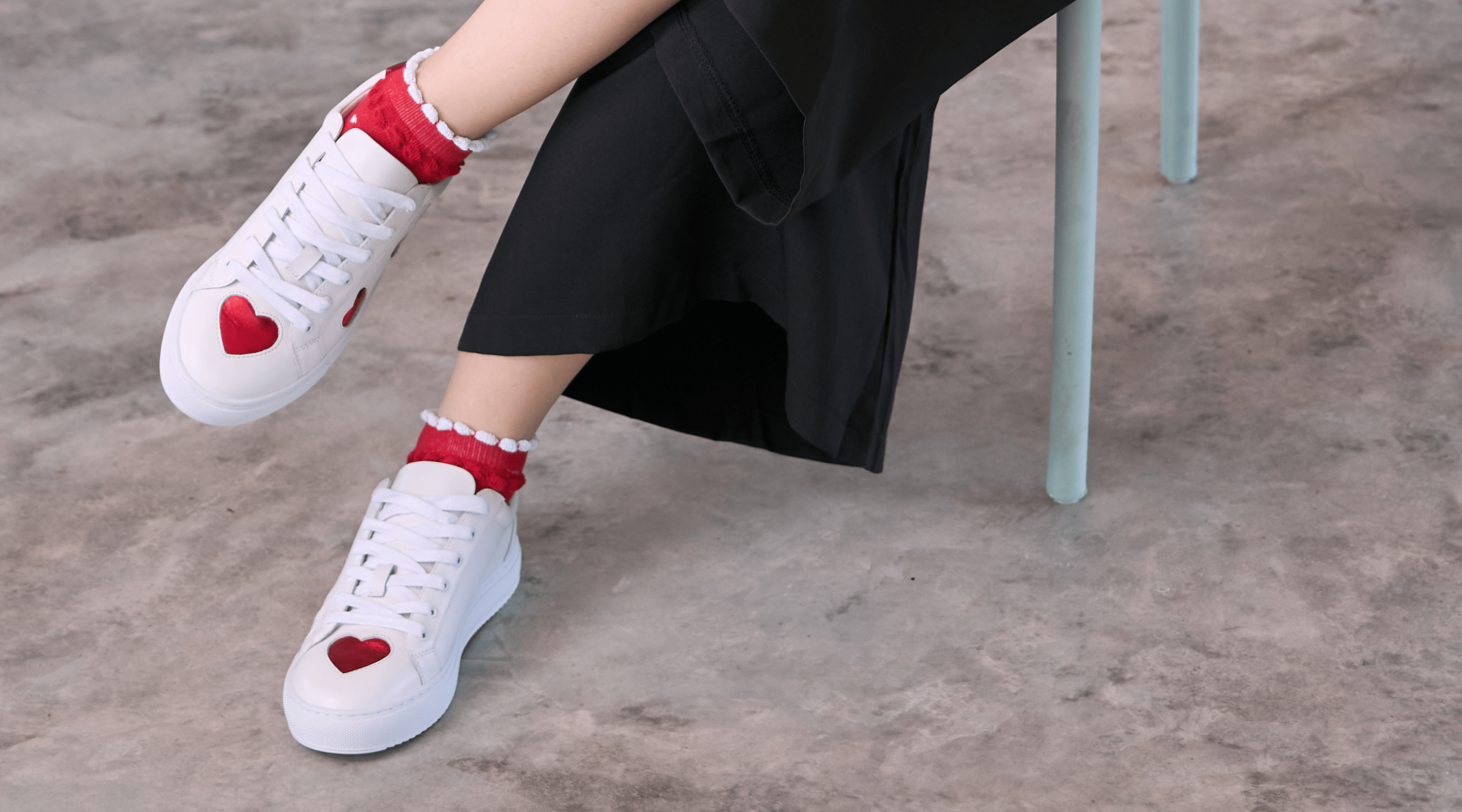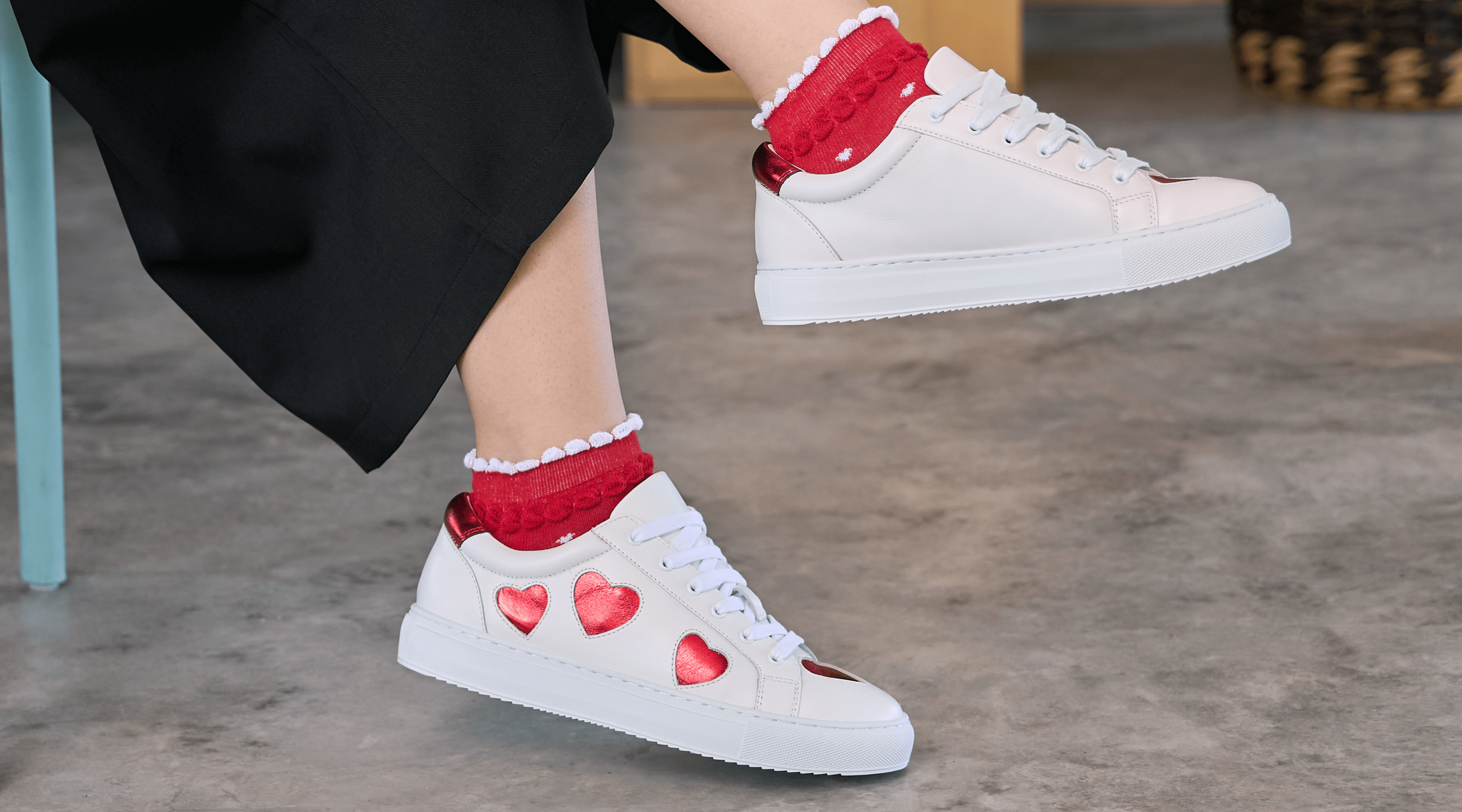 A Look Inside the Comfort of Hoxton White Leather Trainers with Red Hearts